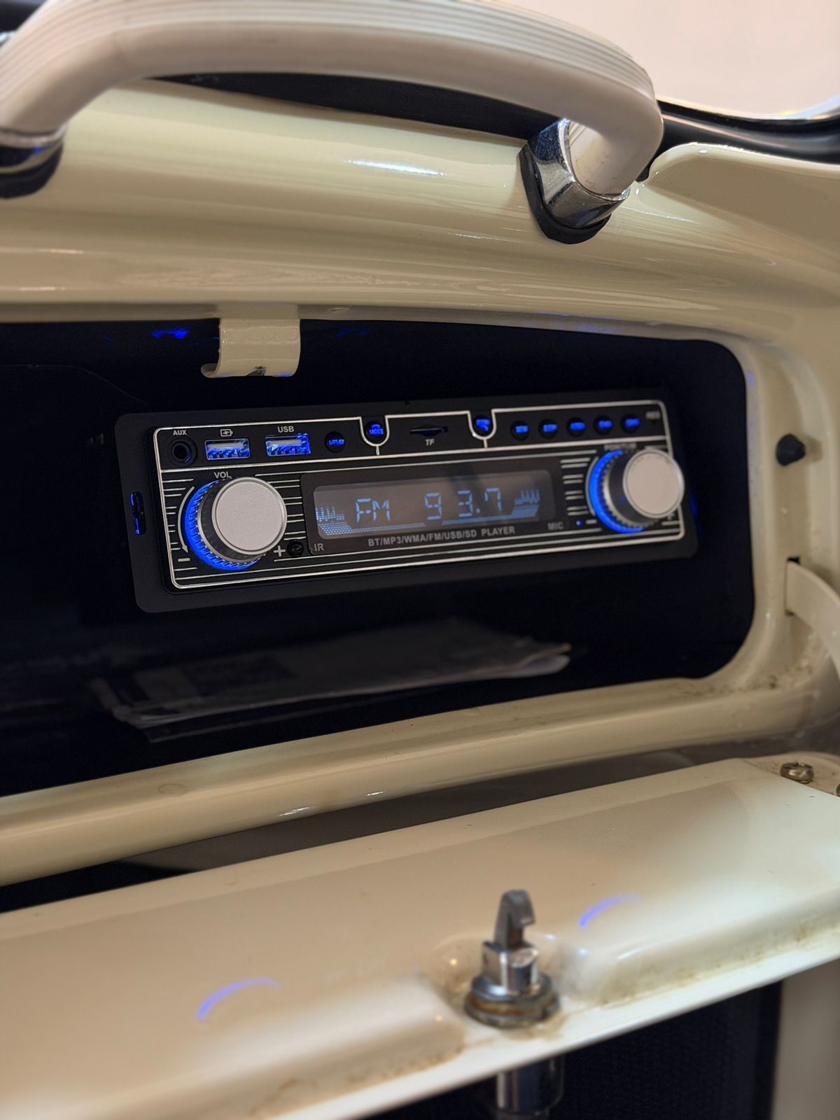 Todo original, mas com particularidades que trazem maior conforto: rádio com Bluetooth no porta luvas e injeção eletrônica.