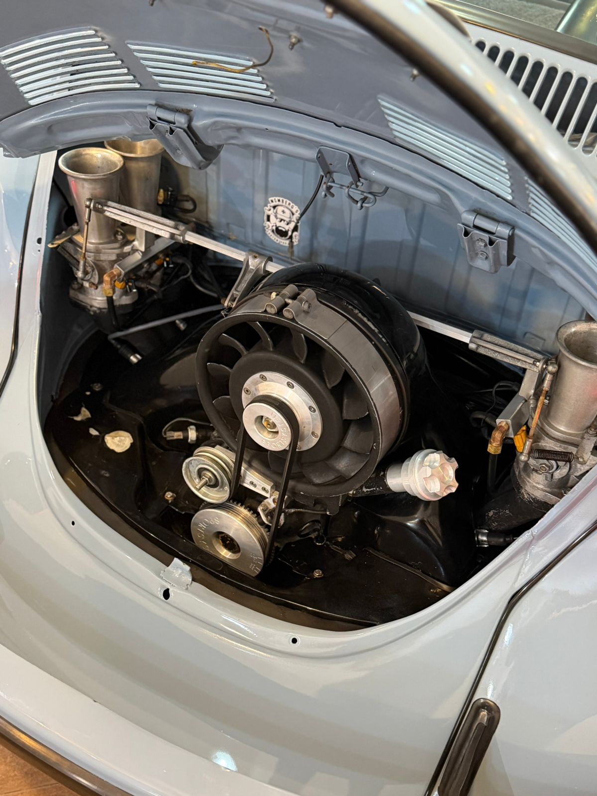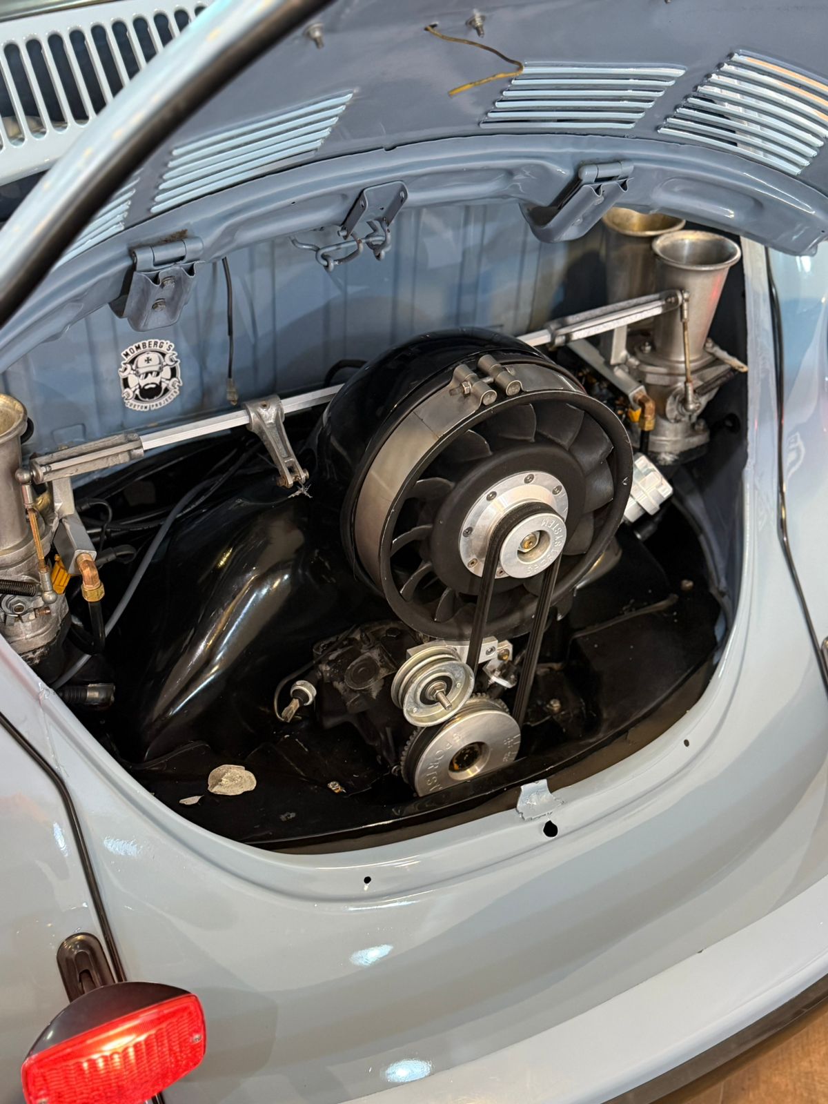 Debaixo da tampa traseira, um motor 1.9 com injeção programável FuelTech FT450, trazendo desempenho, acerto fino e confiabilidade — um conjunto moderno dentro de um ícone atemporal.